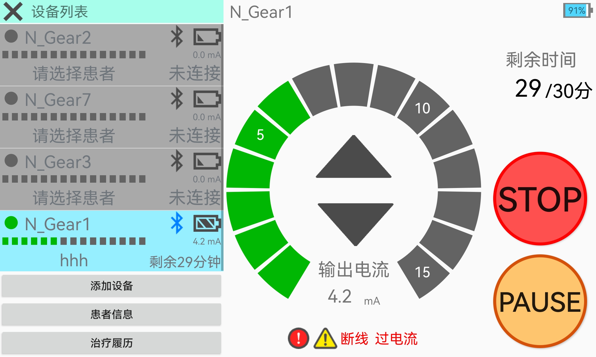 软件管理 :记录患者编号、治疗时间、输出电流参数等信息